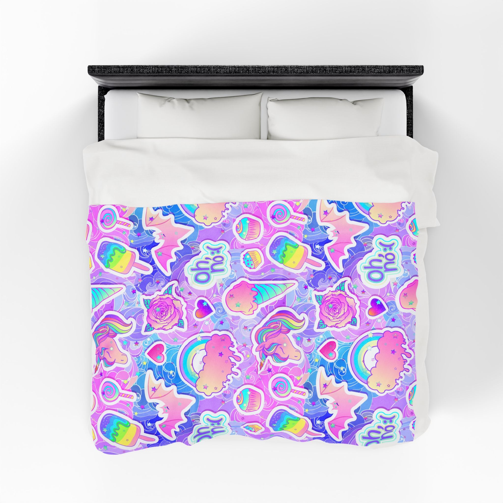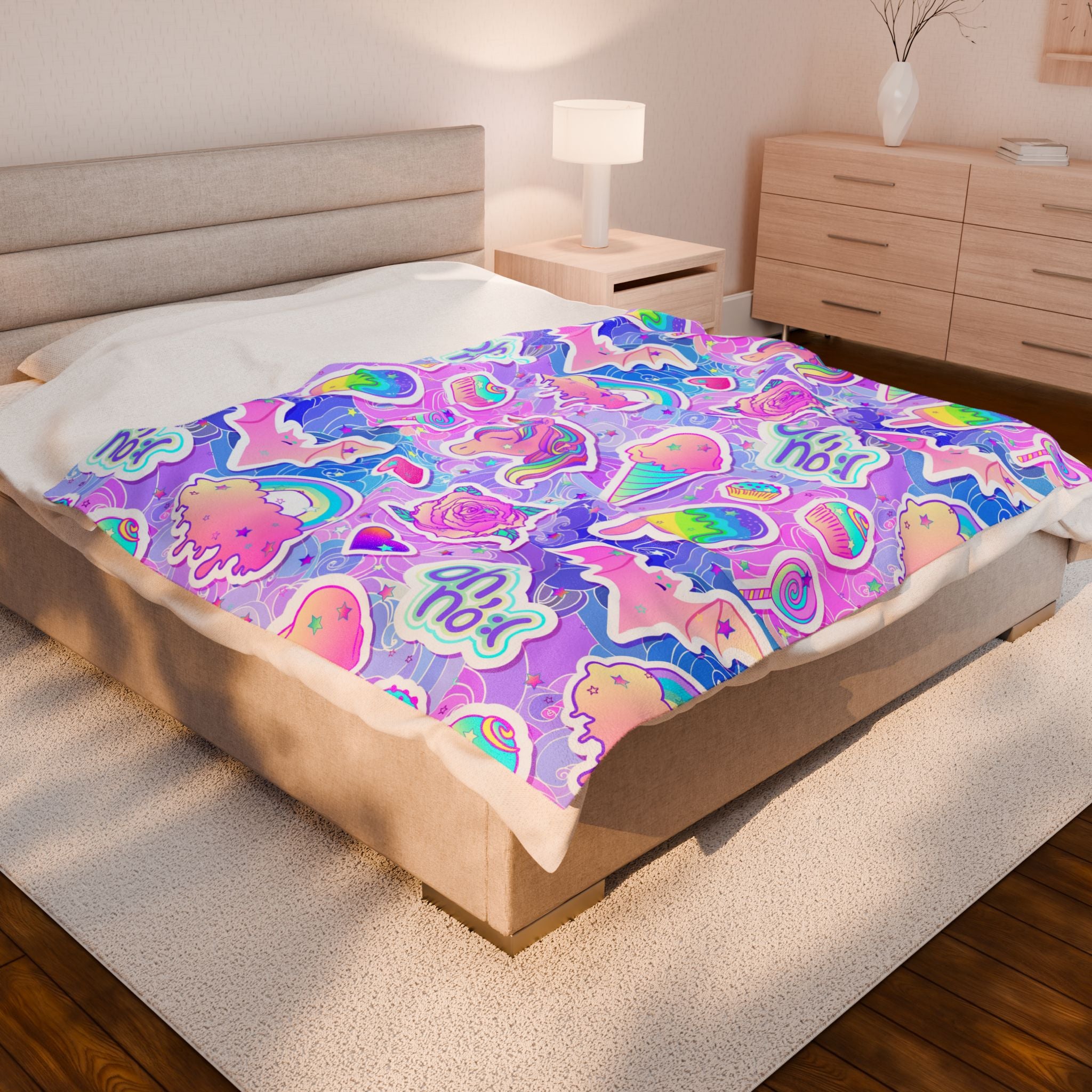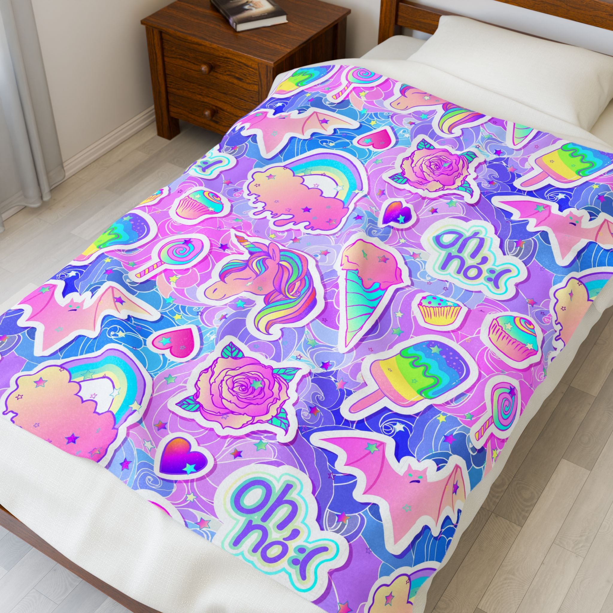 Kawaii Unicorn Whimsy Velveteen Plush Blanket