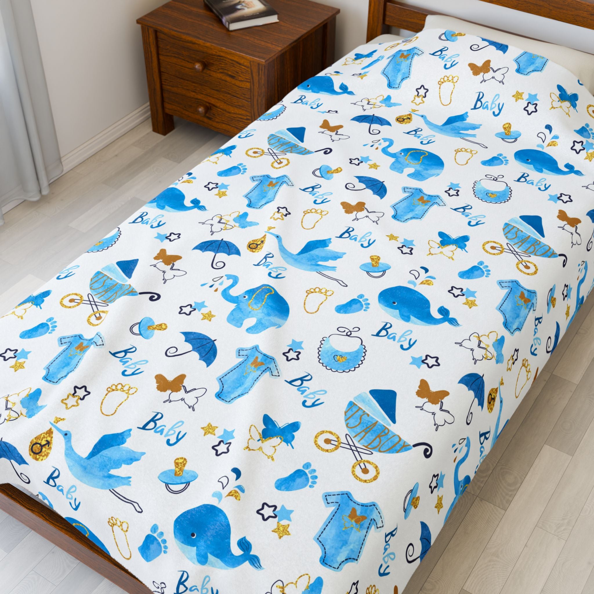 It's a Boy Baby Shower Velveteen Plush Blanket