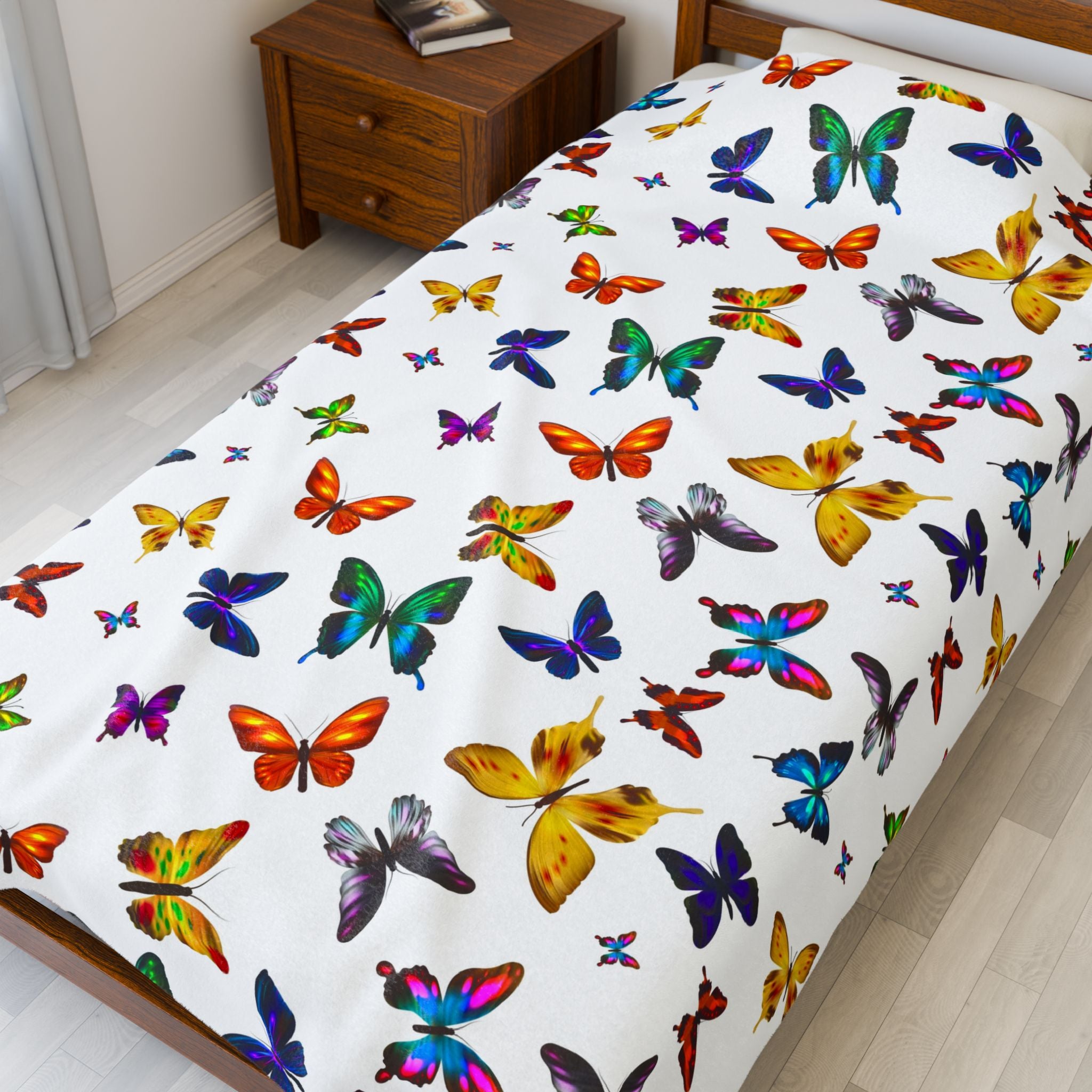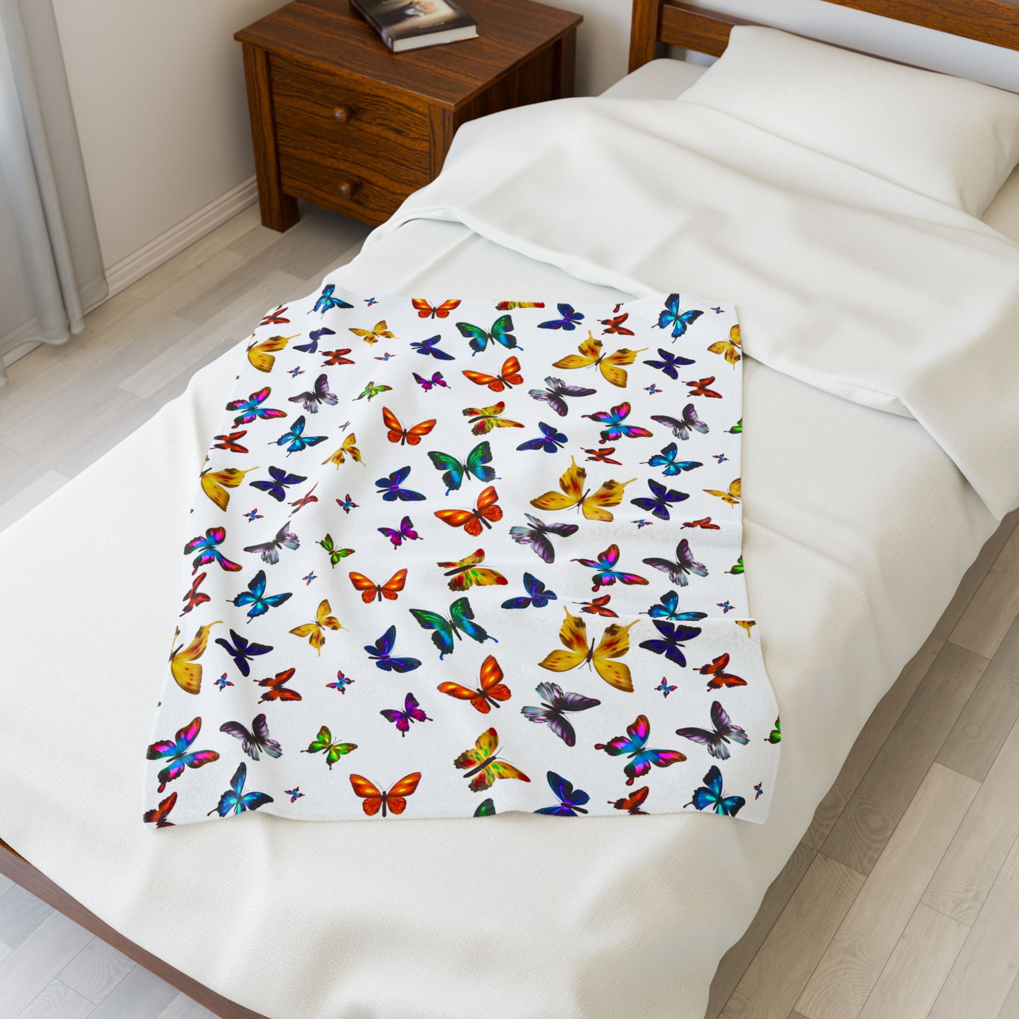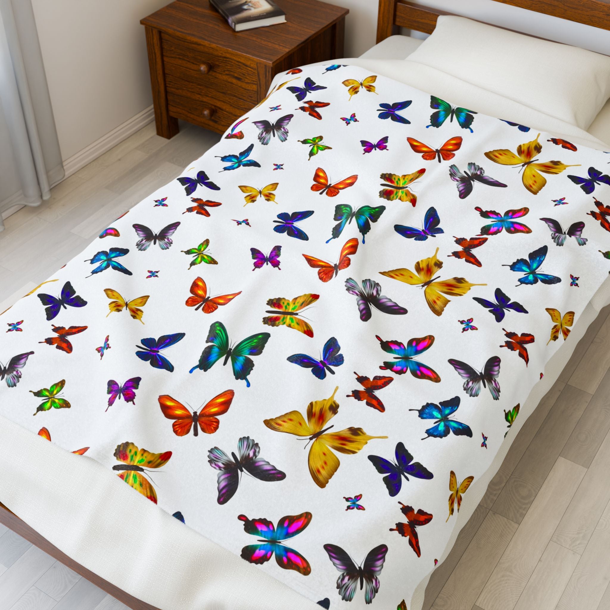 Velveteen Plush Blanket - Colorful Butterflies Blanket