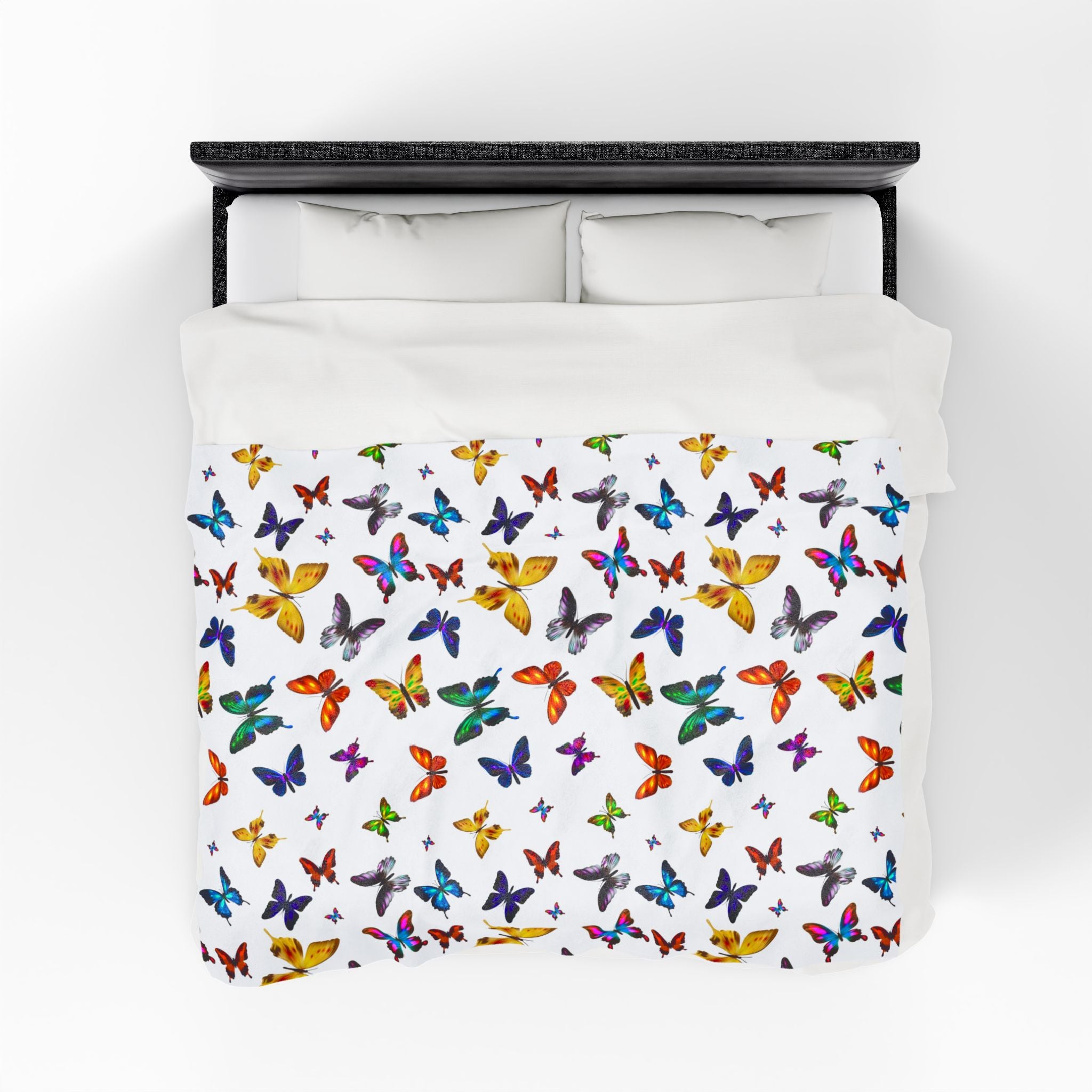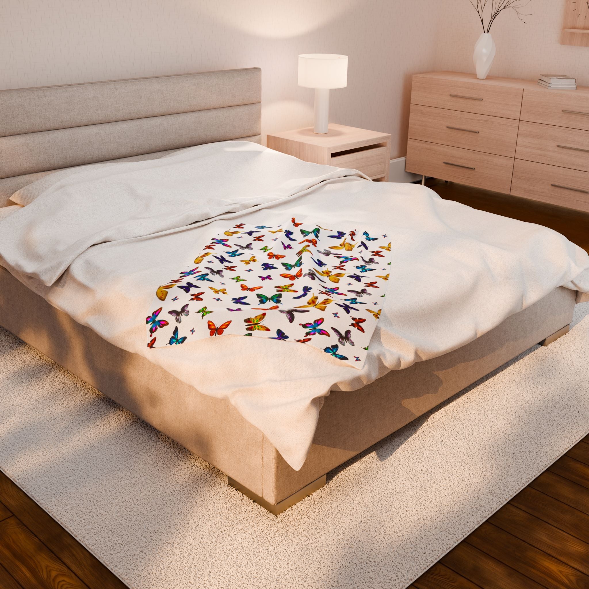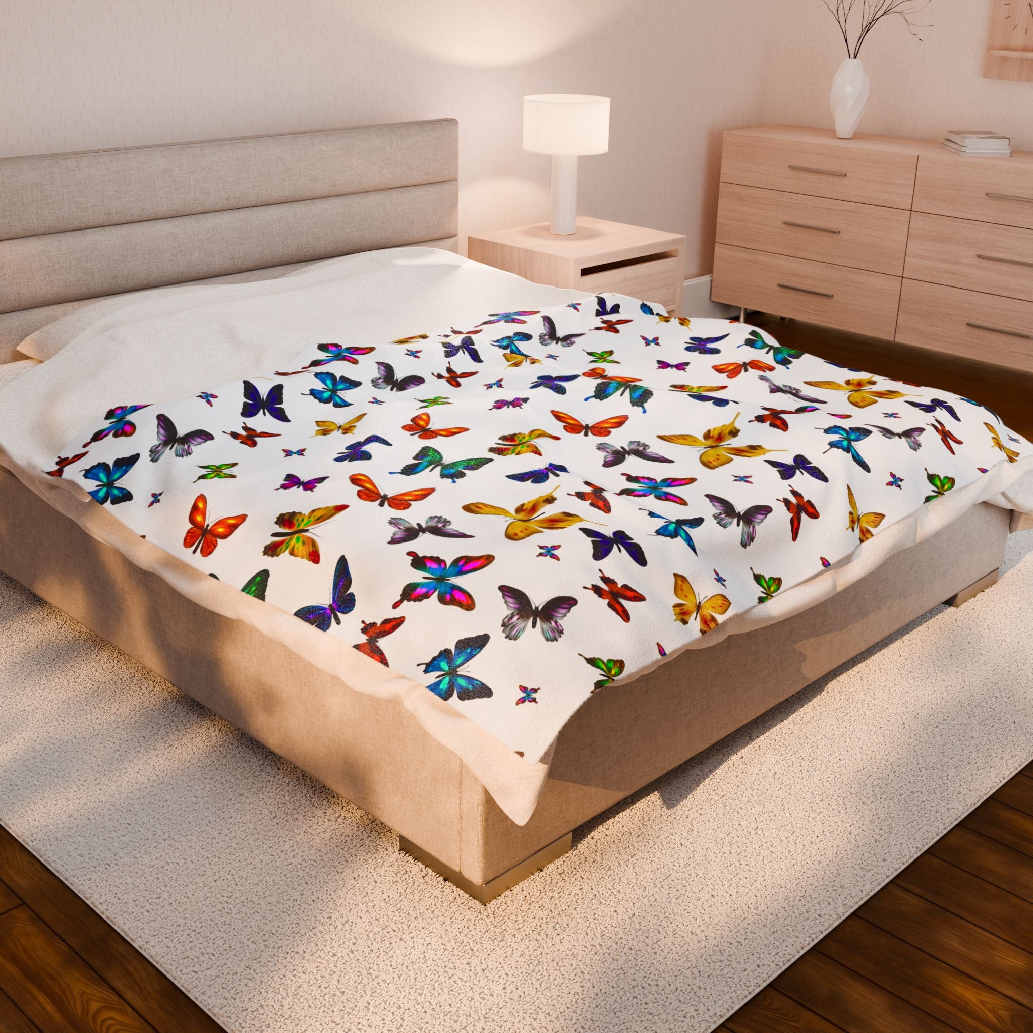 Velveteen Plush Blanket - Colorful Butterflies Blanket