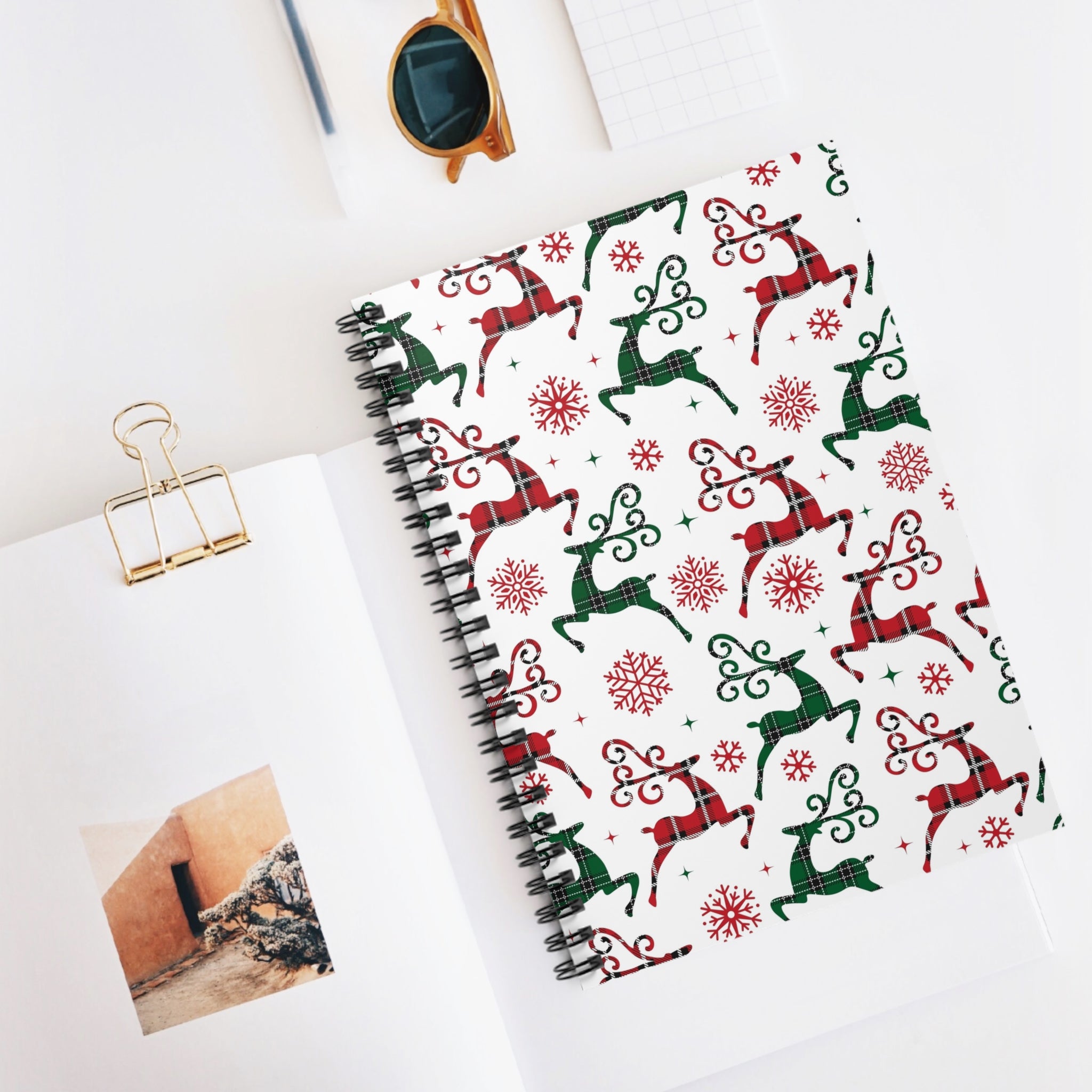 Plaid Christmas Deer Spiral Notebook