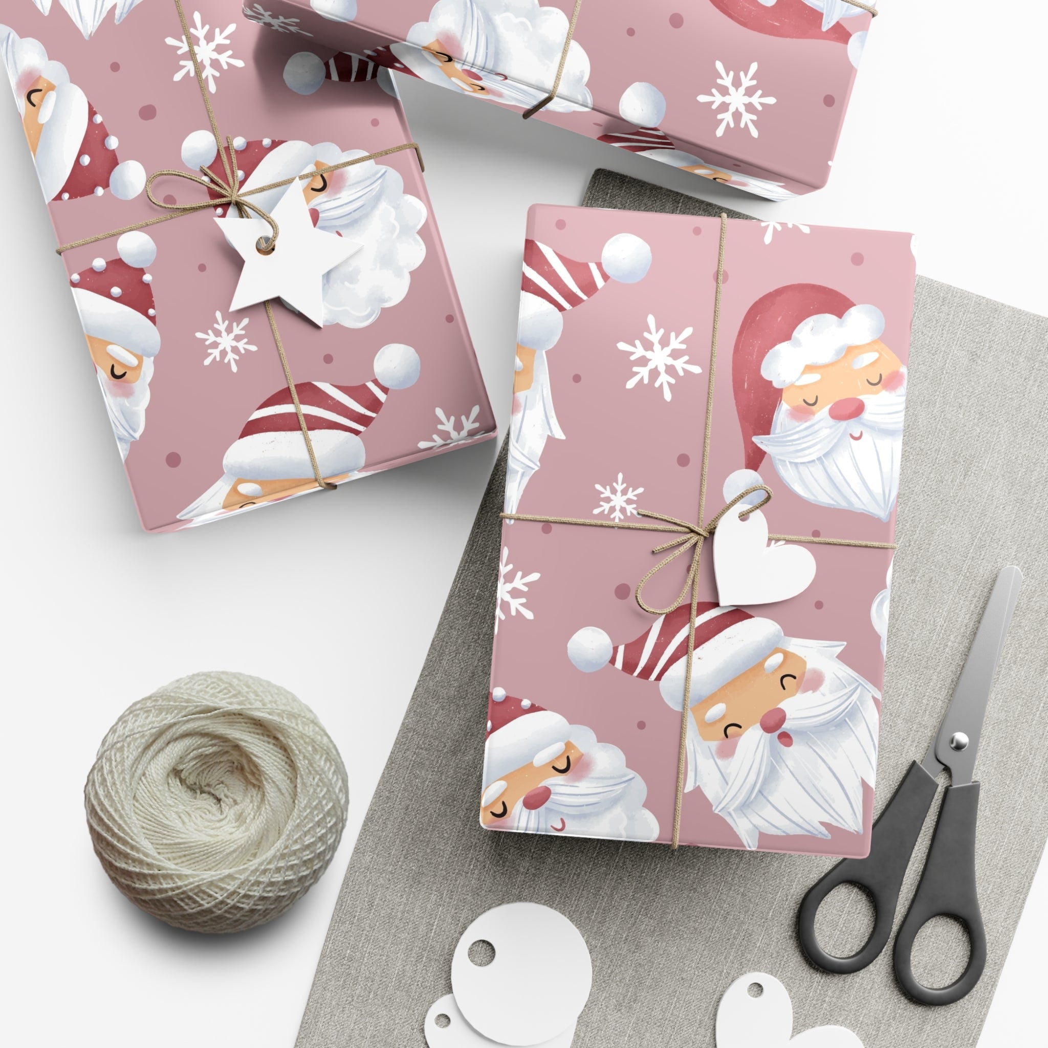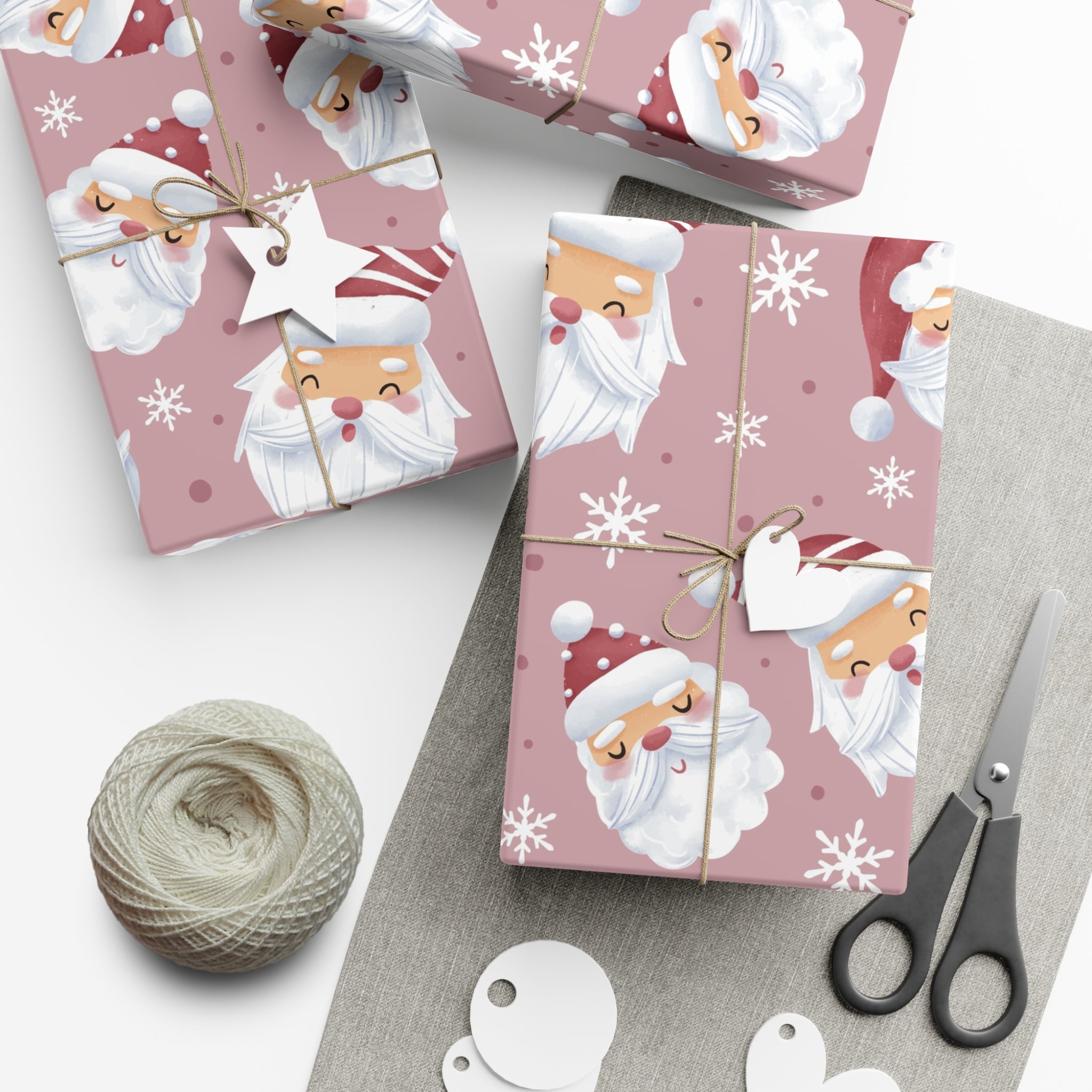 Add a festive touch to your gifts with these Santa Claus face wrapping papers. Perfect for the holiday season, they give off a cheerful and jolly vibe, making your presents extra special. Ideal for anyone looking to add a touch of Christmas magic to their gift-giving.