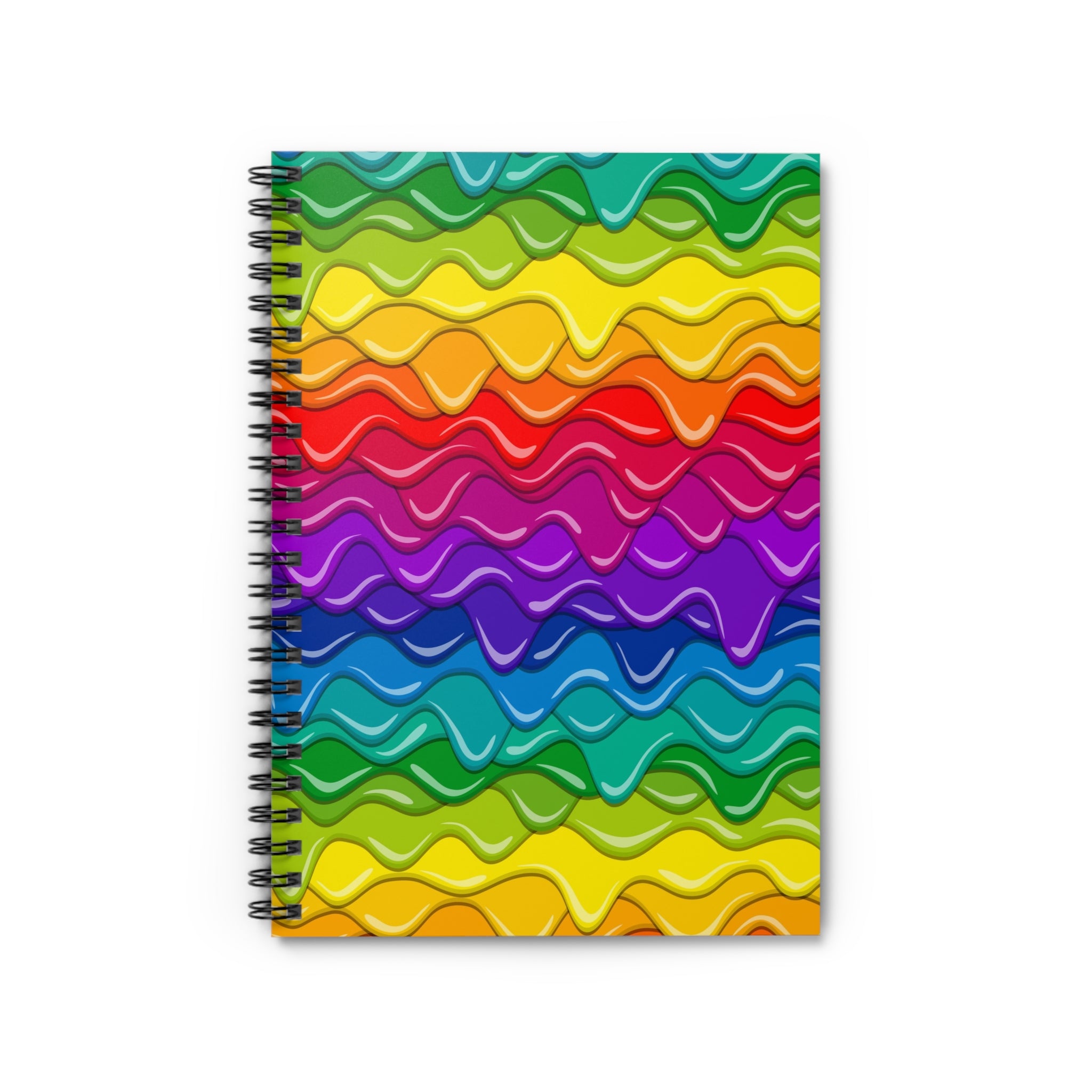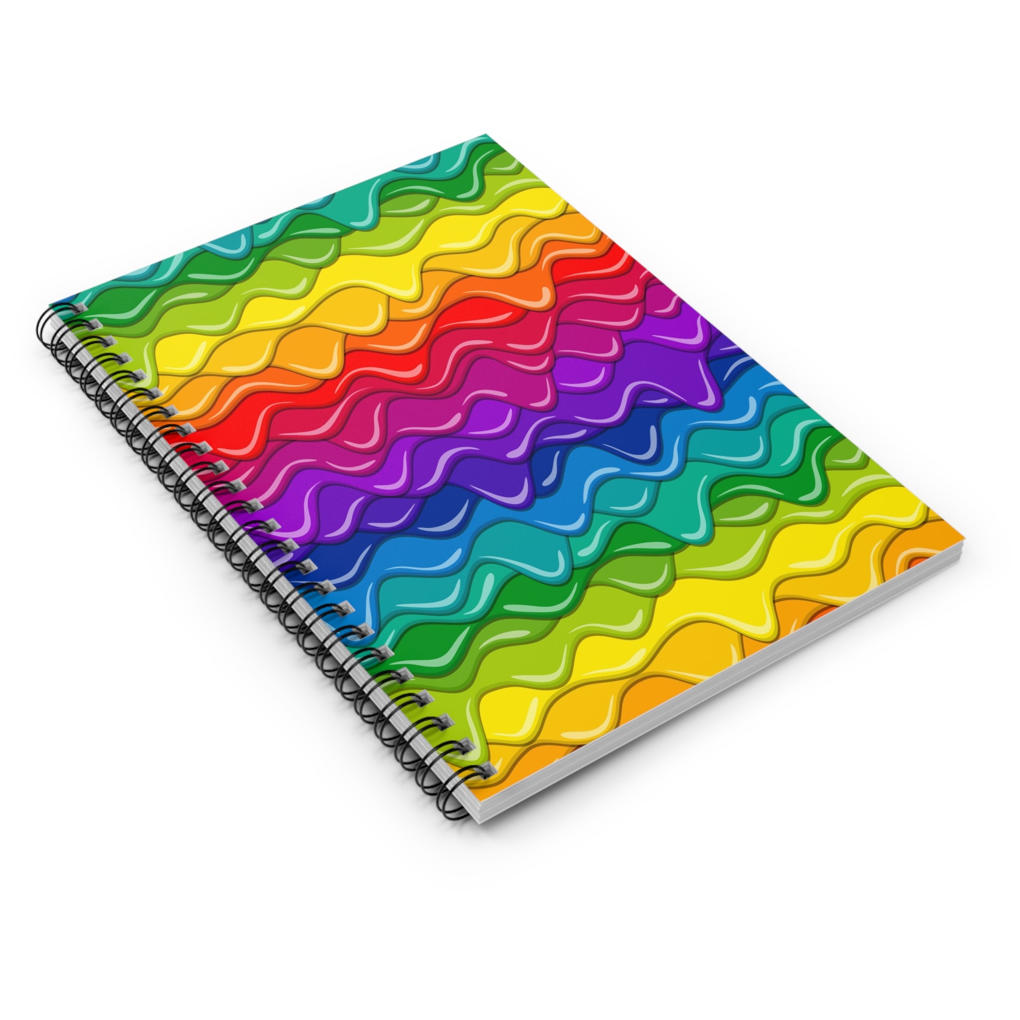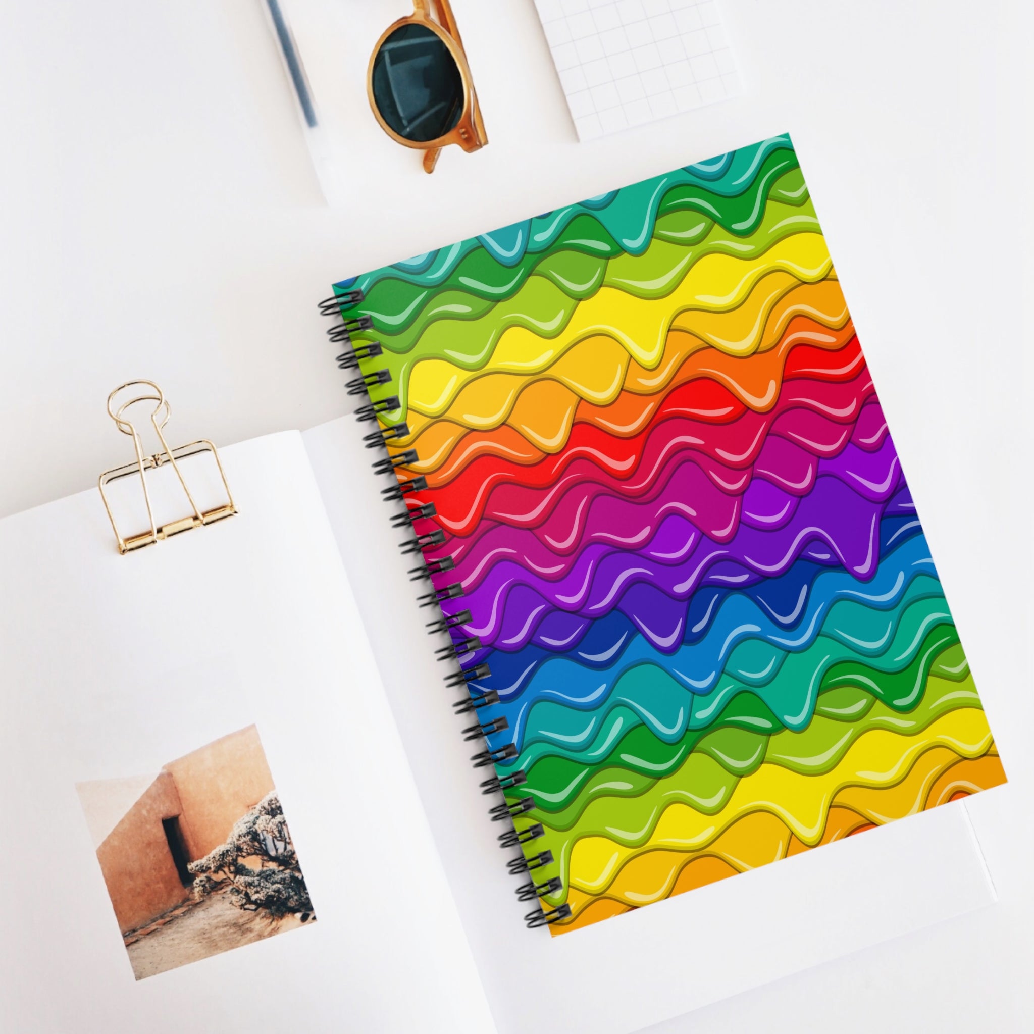A colorful and fun notebook with rainbow frosting glaze design, perfect for writing down your thoughts, ideas, and notes. The metal spiral gives it a fancy look and makes it easy to remove pages. The document pocket on the inside back cover provides added storage. This notebook is ideal for students, writers, and anyone who loves to keep their thoughts organized. Perfect for back-to-school, graduation, or birthdays.