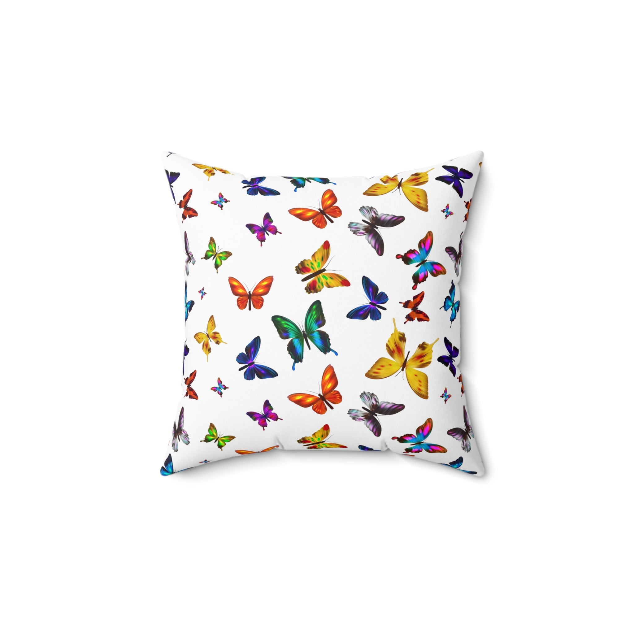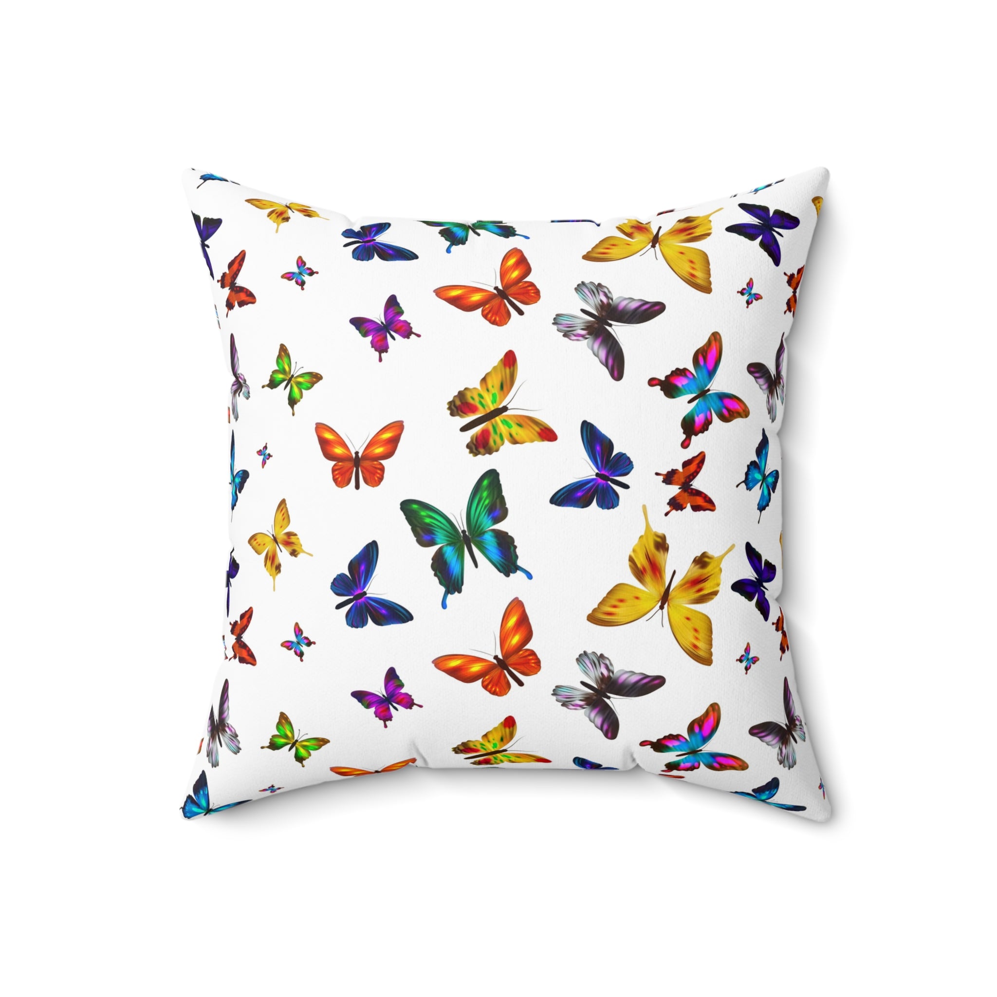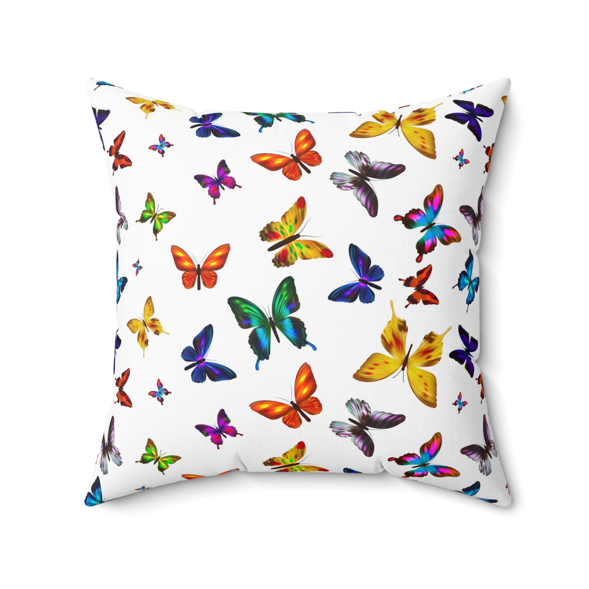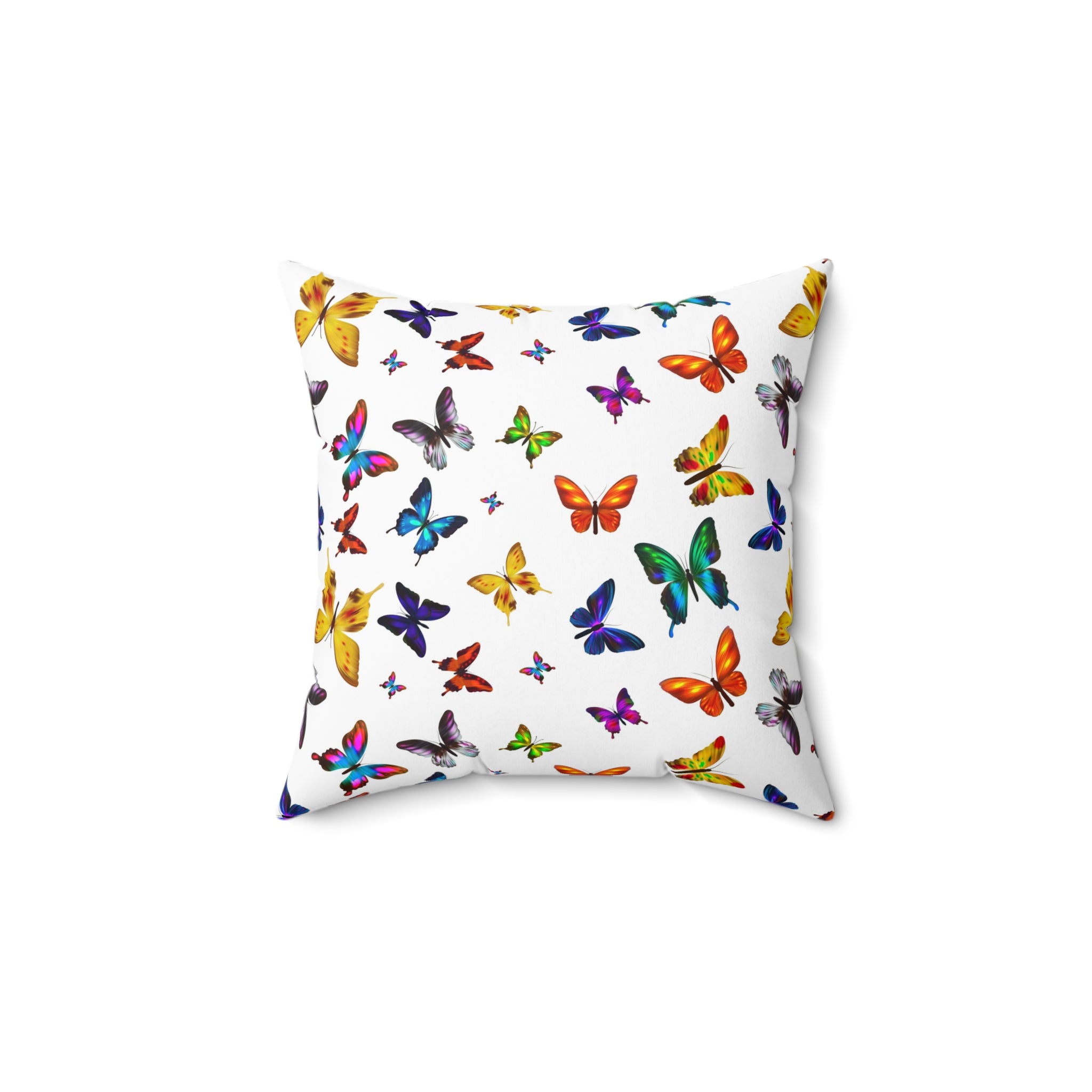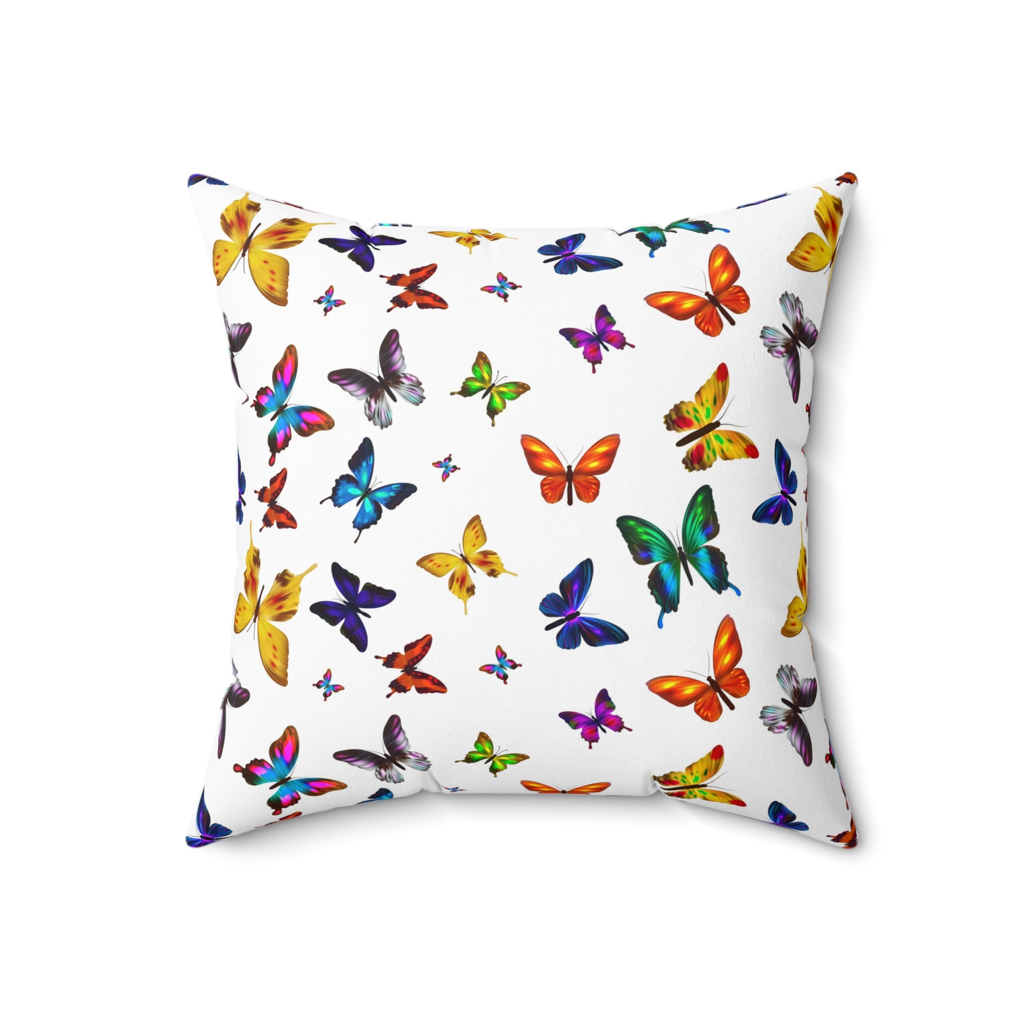 Enhance your living space with this vibrant and whimsical square pillow. Crafted from 100% spun polyester, it’s soft to the touch yet resilient, maintaining its form and color. Perfect for a cozy couch or as a delightful accent on your bed, this pillow brings a splash of color and joy to any room. The enchanting butterfly design adds a touch of nature, making it an ideal decor piece for anyone who loves the outdoors or seeks to bring a cheerful vibe into their home. This pillow is perfect for gifts during housewarmings, birthdays, or just to brighten someone's day. Its versatility makes it suitable for various occasions, including spring and summer celebrations, when you want to welcome freshness into your surroundings.