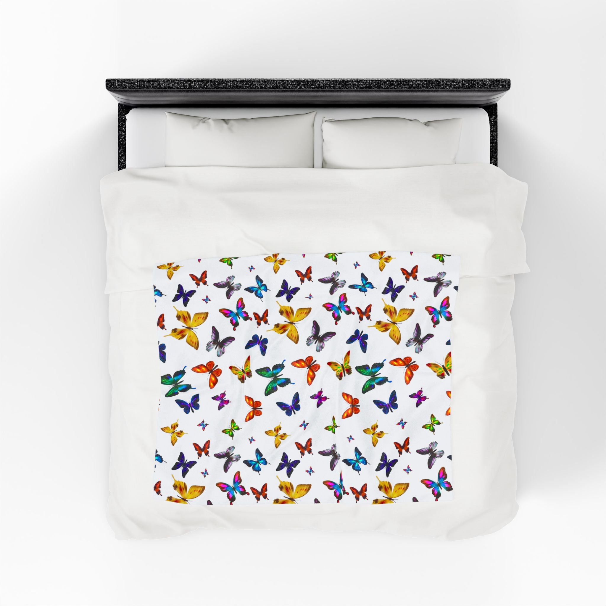 Velveteen Plush Blanket - Colorful Butterflies Blanket