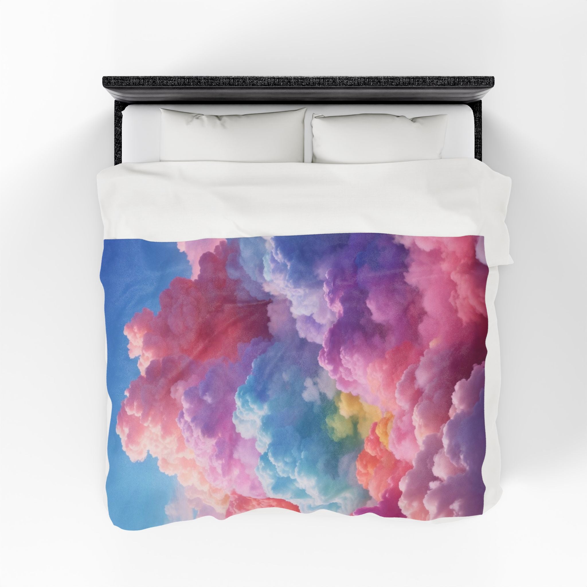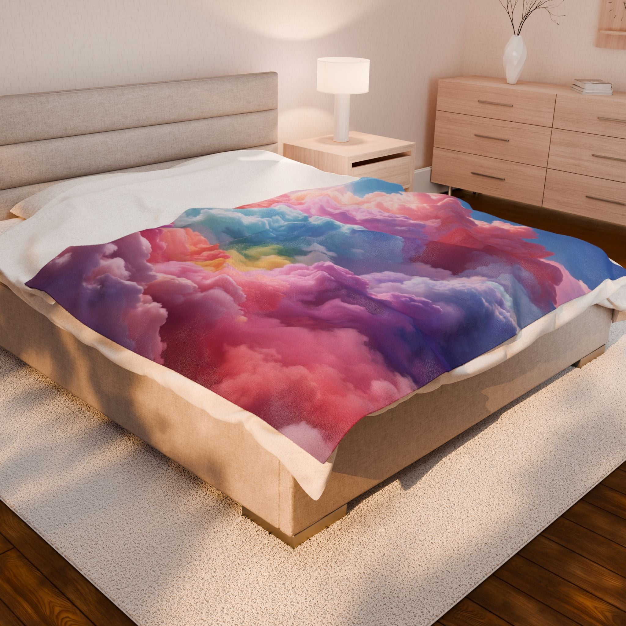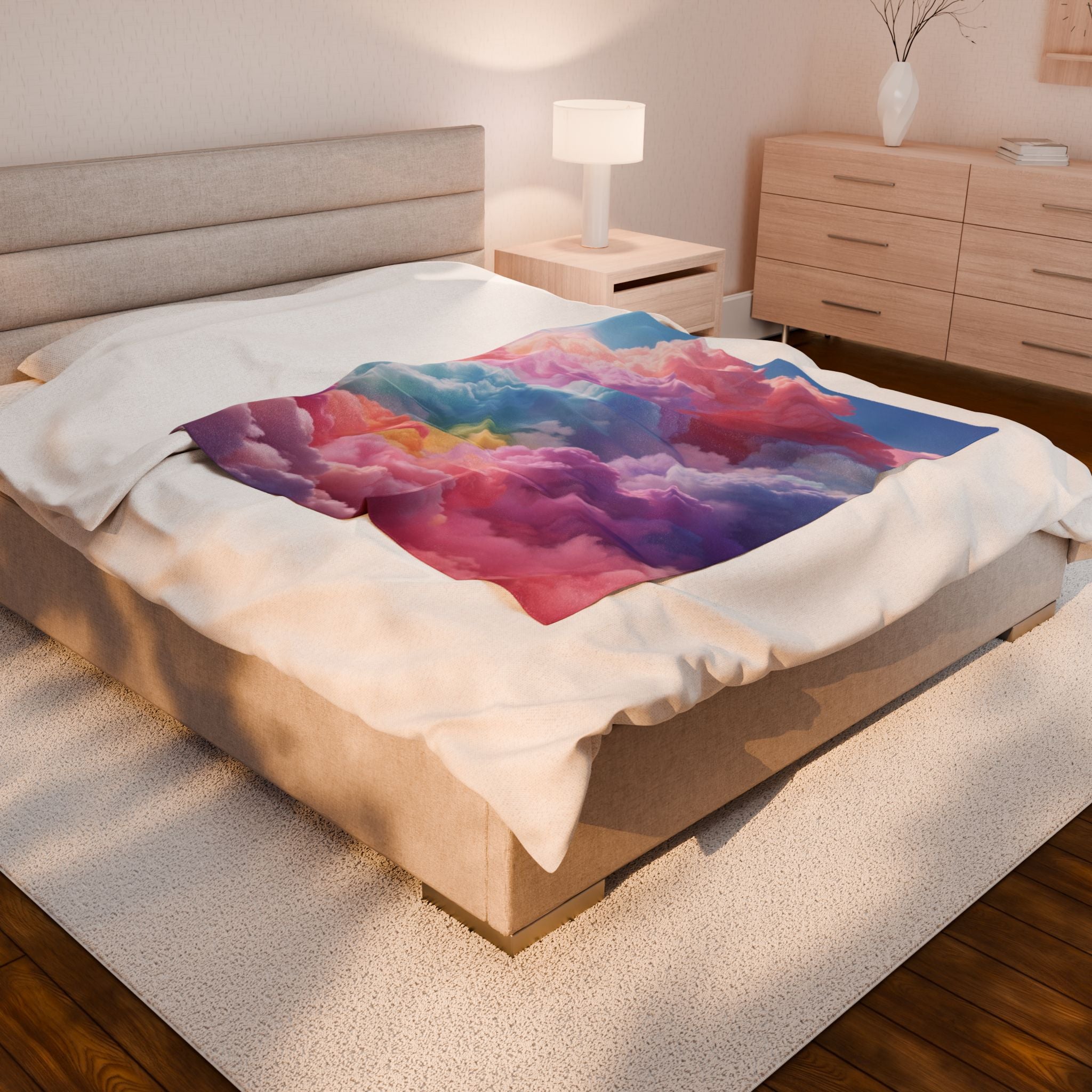 This velveteen plush blanket features a design of pastel clouds, giving off a cozy and dreamy vibe. Perfect for snuggling up on the couch or adding a touch of whimsy to a bedroom. Ideal for adults looking for a soft and durable blanket. Great for gift-giving during holidays like Christmas or birthdays.